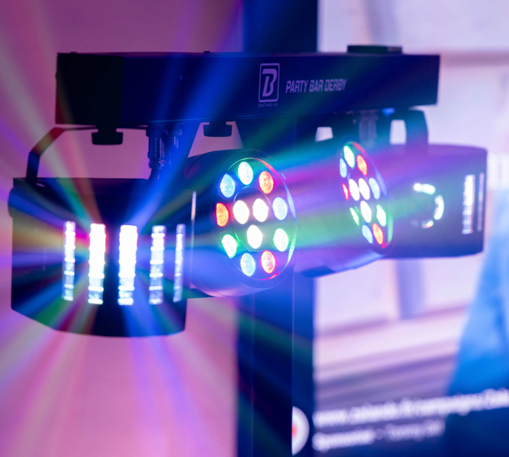 Facile à installer sur trépied, avec programmes automatiques et télécommande, elle offre des effets lumineux puissants et variés en quelques minutes
